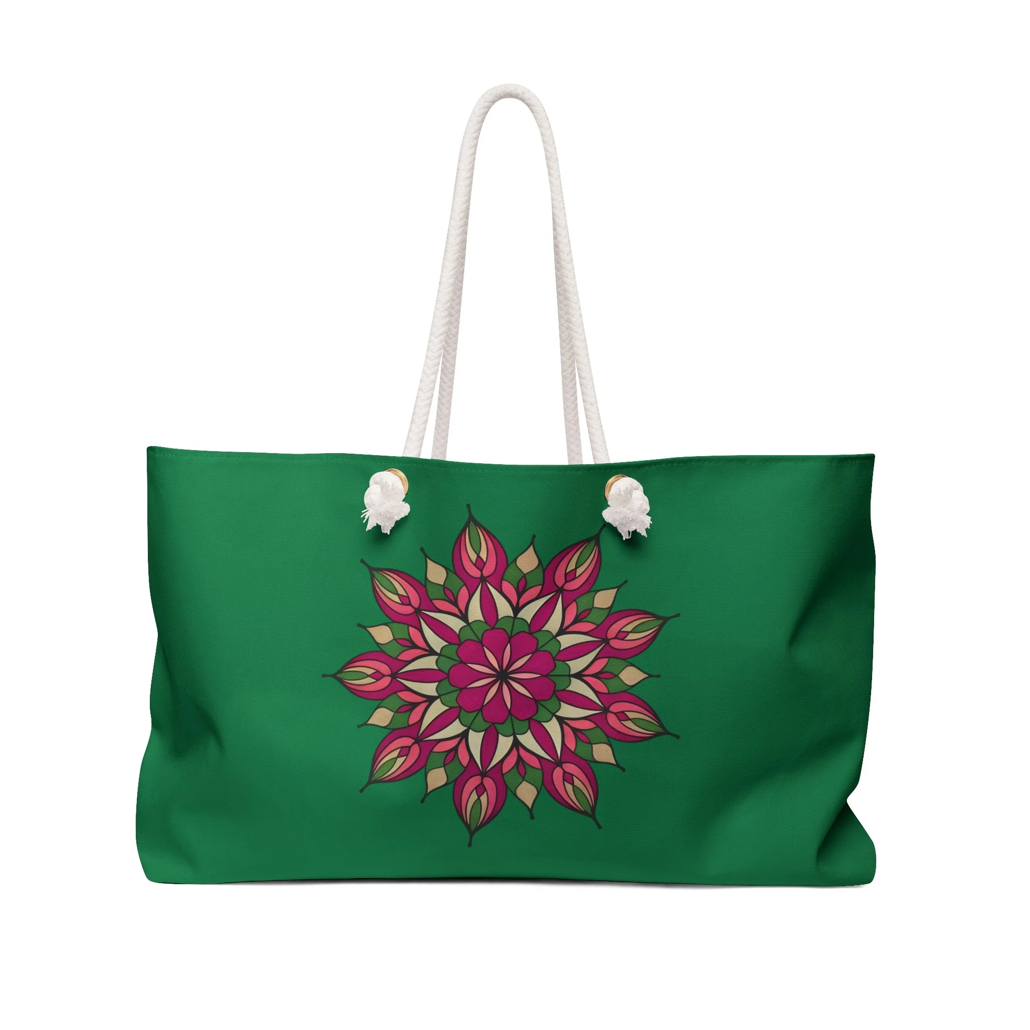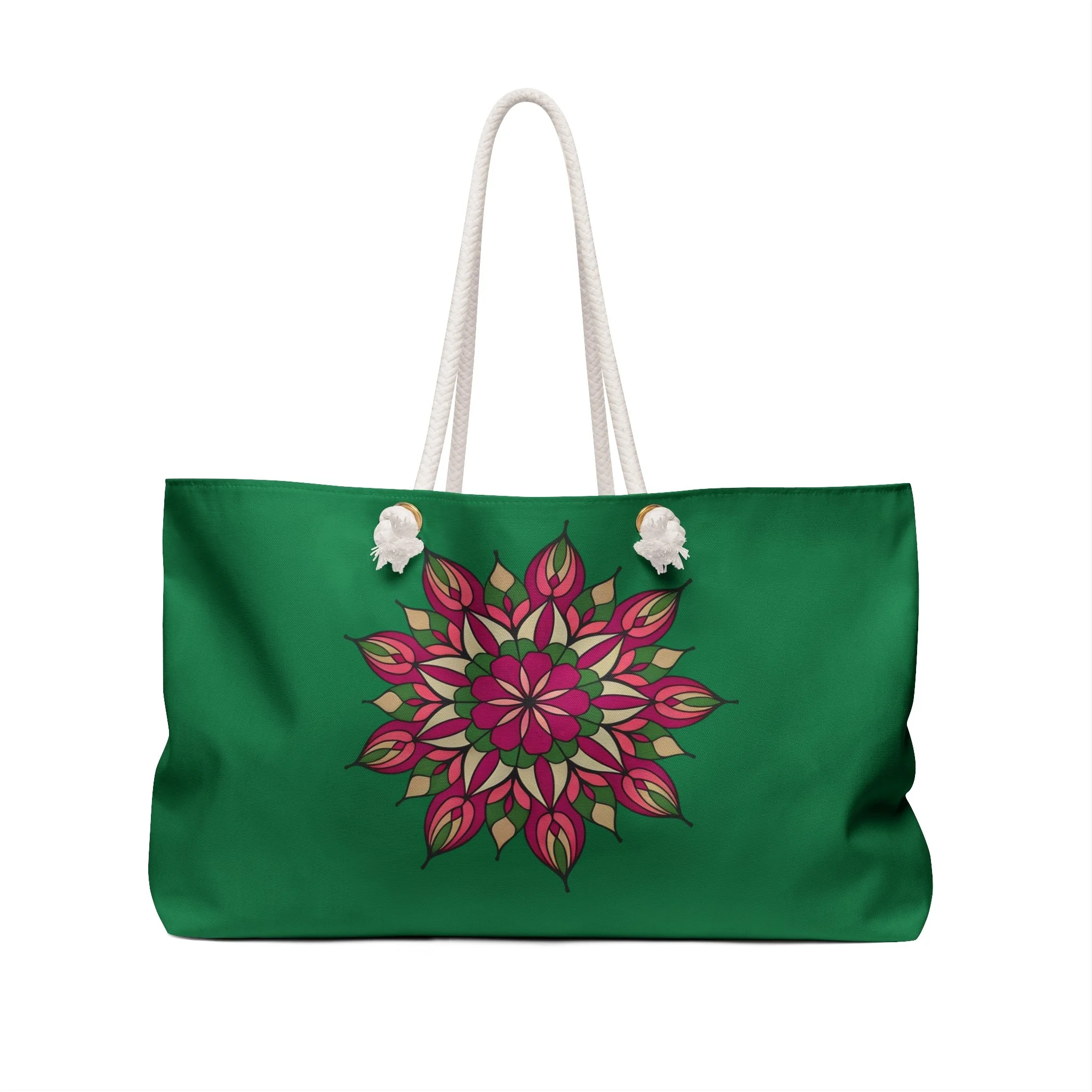 Avery Mandala Floral Mandala Weekender Bag – Green Travel Tote for Getaways