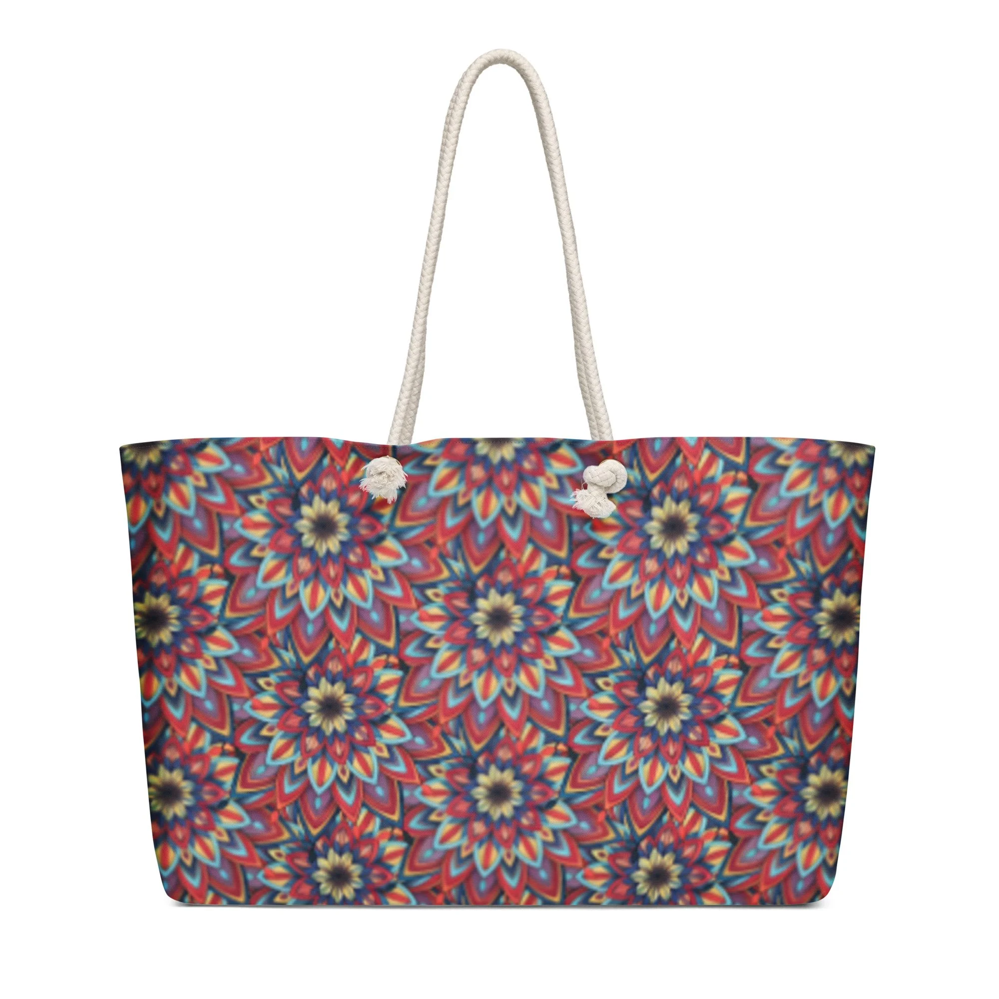 STORE › Phoebe Mandala Art Oversized Weekender Bag by Infinite Hue Image 1 of 4 Image 2 of 4 Image 3 of 4 Image 4 of 4 Phoebe Mandala Art Oversized Weekender Bag by Infinite Hue $29.50 Big, bold, and ready to roam. This roomy tote features soft rope handles, a wrinkle-free finish, and plenty of space for your weekend essentials. • 100% spun polyester exterior • 50% cotton, 50% polyester cream sheeting interior lining • Cream-colored cotton rope handles through metal grommets • Size: 24″ × 13″ × 5.5″ (60.9 × 33 × 14 cm) • Blank product sourced from China Add To Cart Added! Big, bold, and ready to roam. This roomy tote features soft rope handles, a wrinkle-free finish, and plenty of space for your weekend essentials. • 100% spun polyester exterior • 50% cotton, 50% polyester cream sheeting interior lining • Cream-colored cotton rope handles through metal grommets • Size: 24″ × 13″ × 5.5″ (60.9 × 33 × 14 cm) • Blank product sourced from China