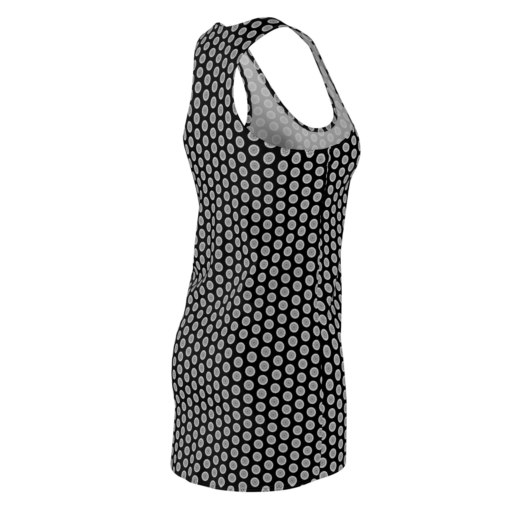 This racerback dress feels like movement made visible. Lightweight and breathable, its sporty silhouette follows your shape without clinging — a smooth layer that travels from morning runs to sunset walks. The monochrome polka-dot pattern gives it a modern, graphic edge: playful yet streamlined. Slip it on for a neighborhood coffee, an outdoor class, or an evening stroll; it layers easily under a denim jacket or stands alone with sneakers. The racerback cut frees your shoulders and keeps the look athletic and confident, while tagless construction and soft self-fabric binding keep distractions to a minimum. Wear it when you want something unfussy, stylish, and ready for whatever the day asks.